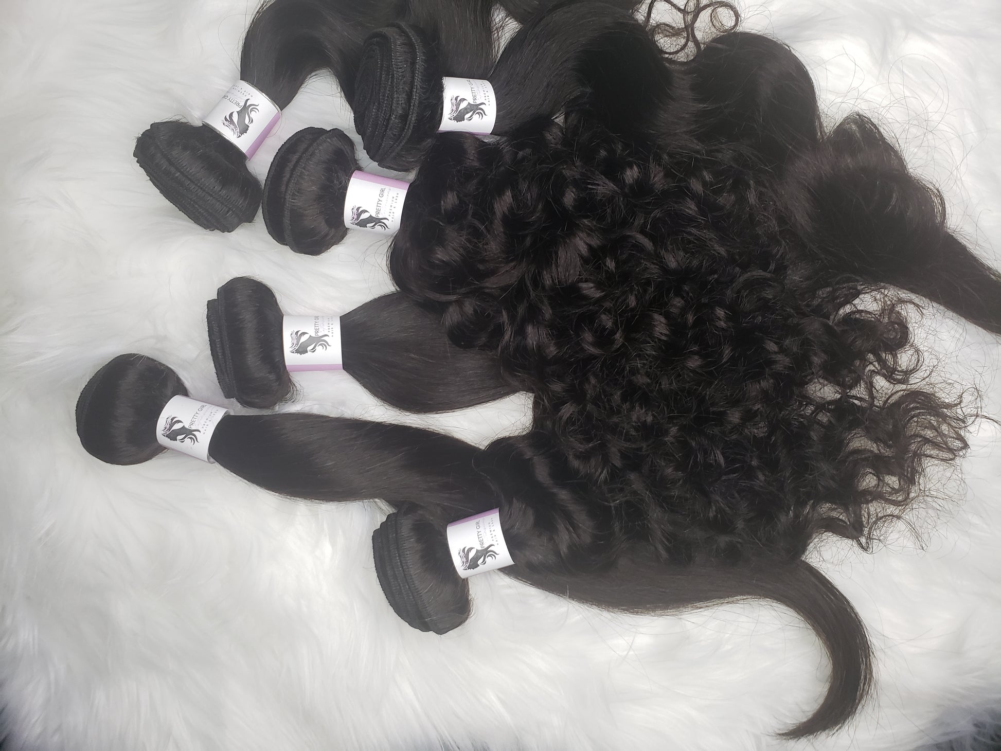 This is a 20 peice bundle which includes 15 bundles & (5) 4×4 Transparent Lace Closures.